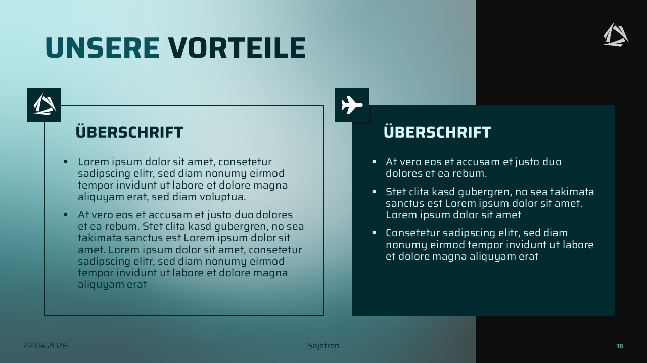 Um eine Marke aufzubauen, ist es besonders wichtig, dass diese über alle Medien hinweg konsistent wirkt. Deshalb erstellte ich diverse Vorlagen, die für die zukünftige Markenkommunikation von Sajetron genutzt werden können.
